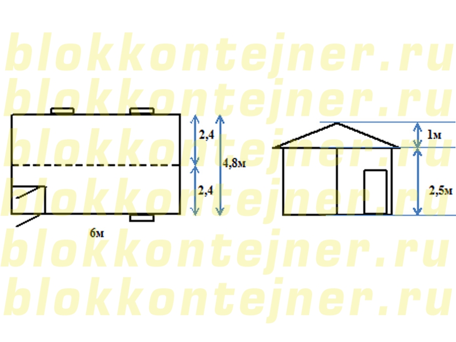 Модульное здание 6,0м * 4,8м * 2,5м состоит из 2-х Блок - контейнеров  БК 6,0*2,4*2,5 (штаб)